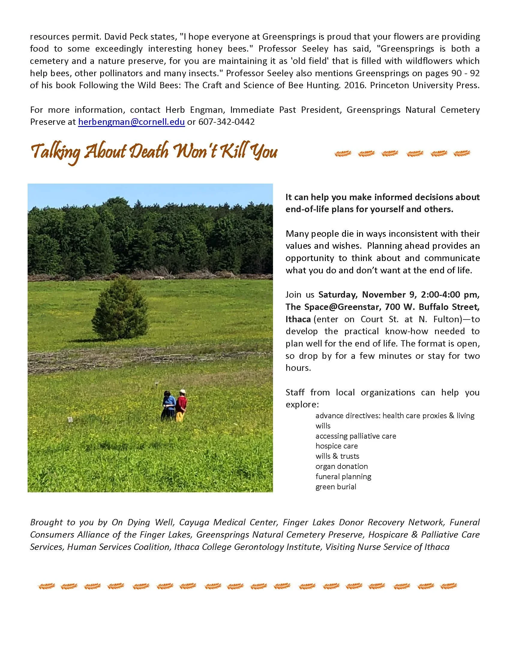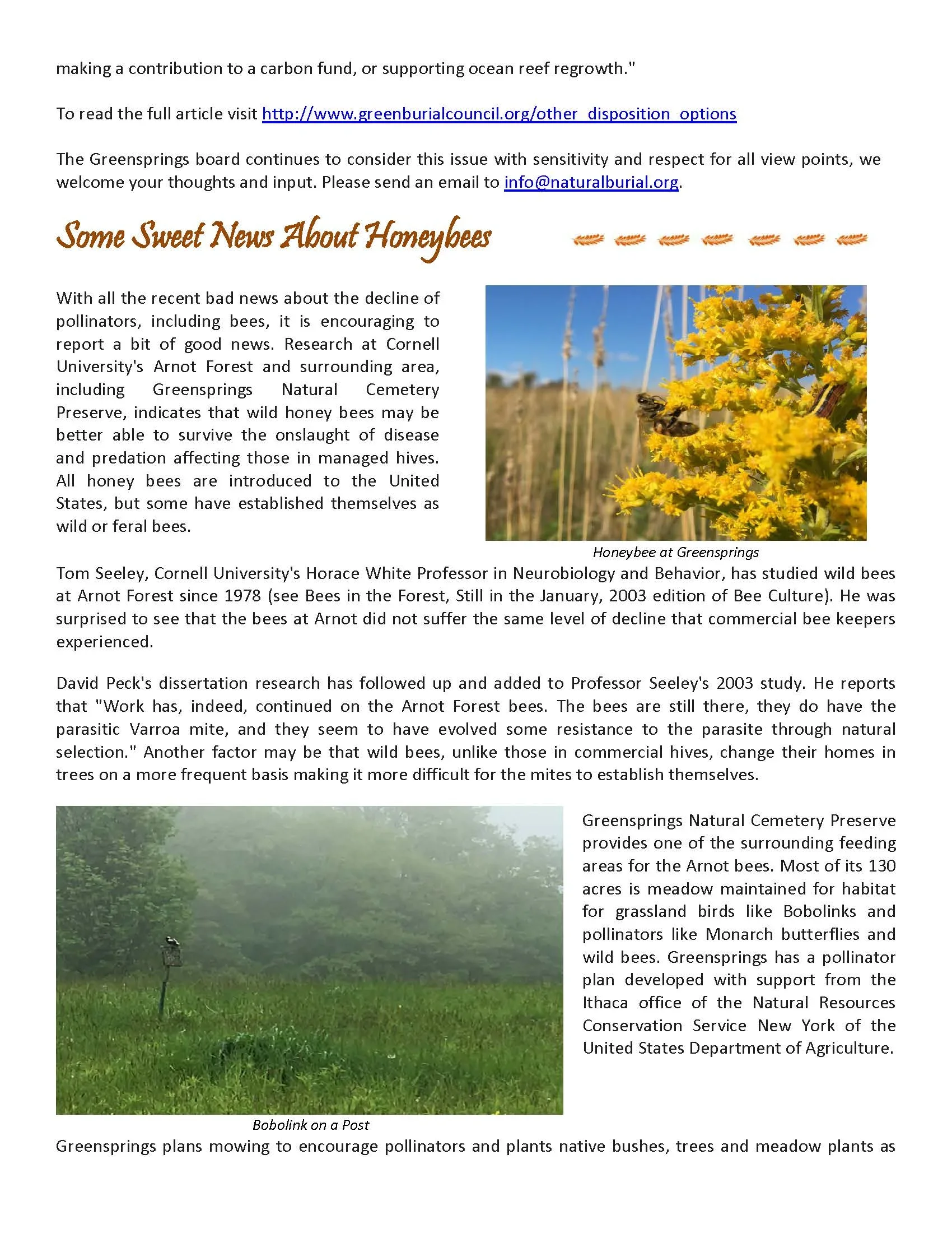 Greensprings Natural Cemetery Annual Meeting and Other News (2019)