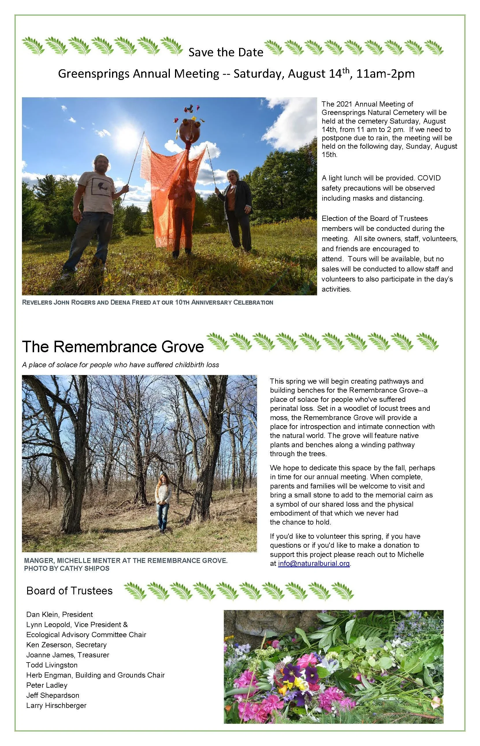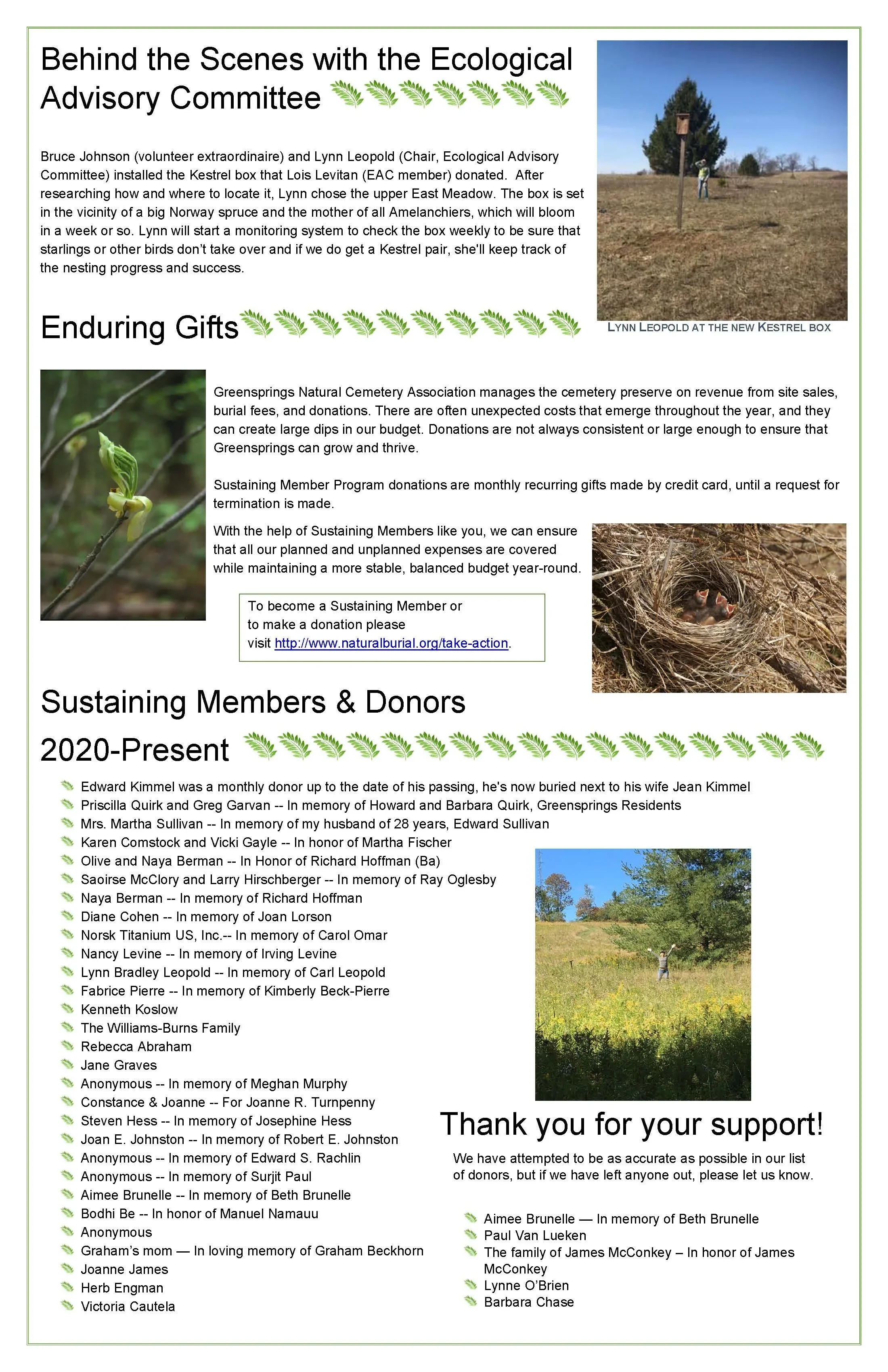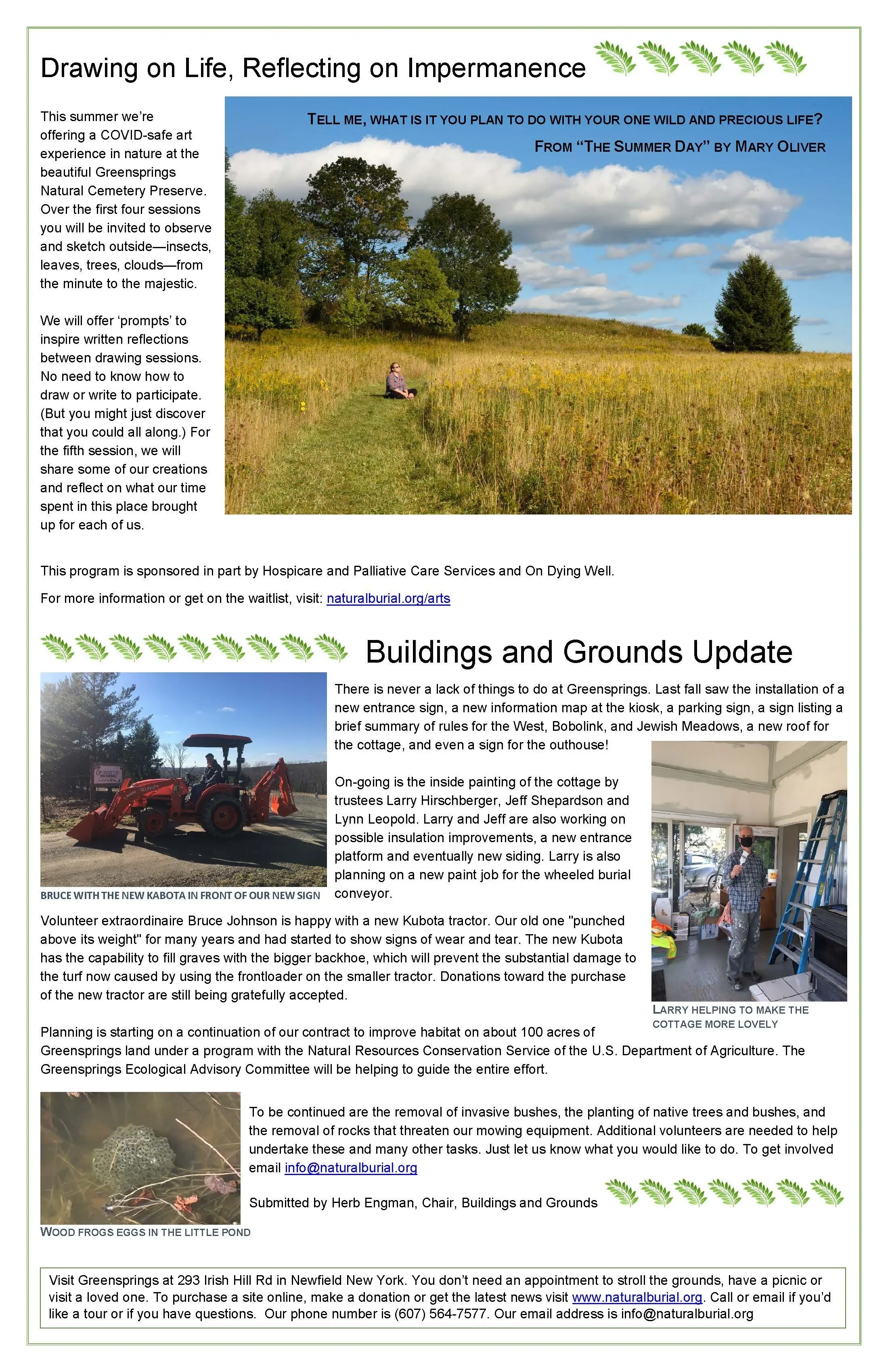 Spring Newsletter (2021) Apr 1 Written By Greensprings Natural Cemetery Greensprings Natural Cemetery
