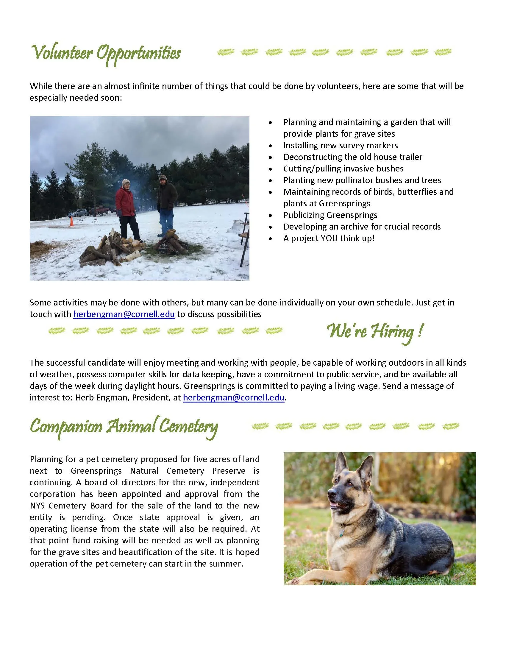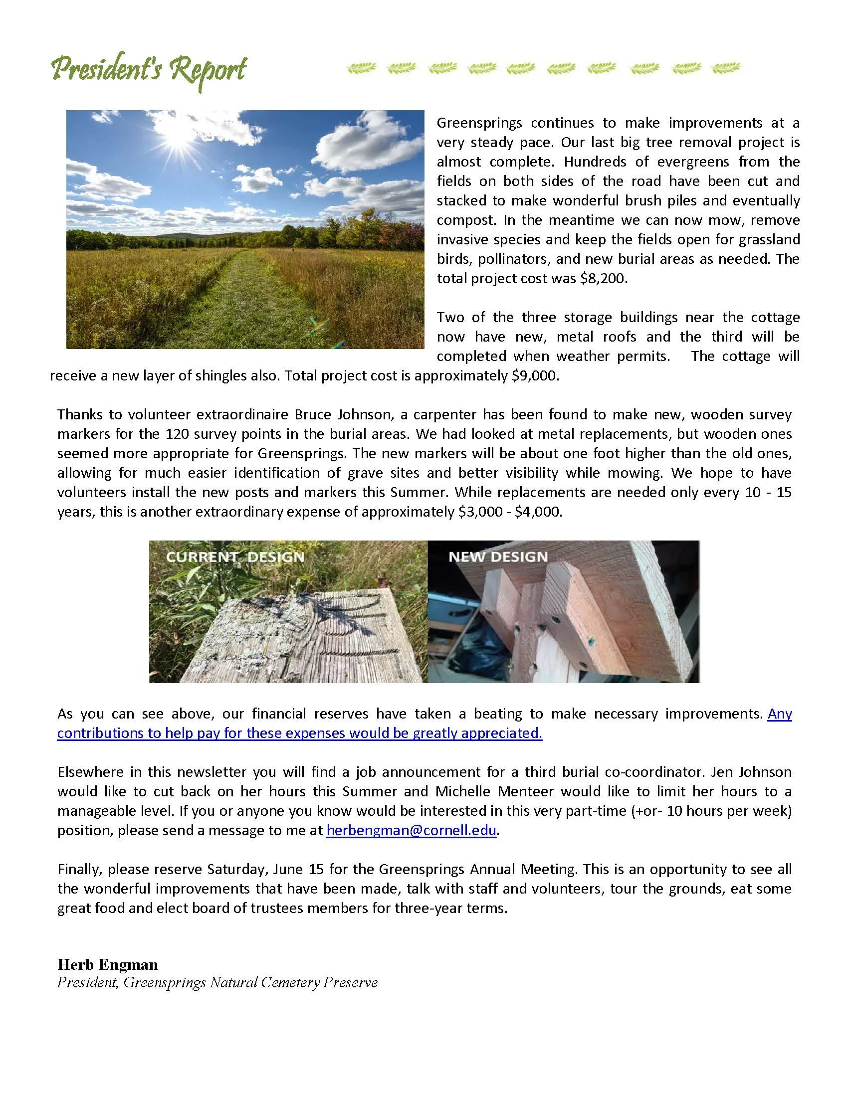 Spring Newsletter (2019) Apr 1 Written By Greensprings Natural Cemetery Greensprings Natural Cemetery