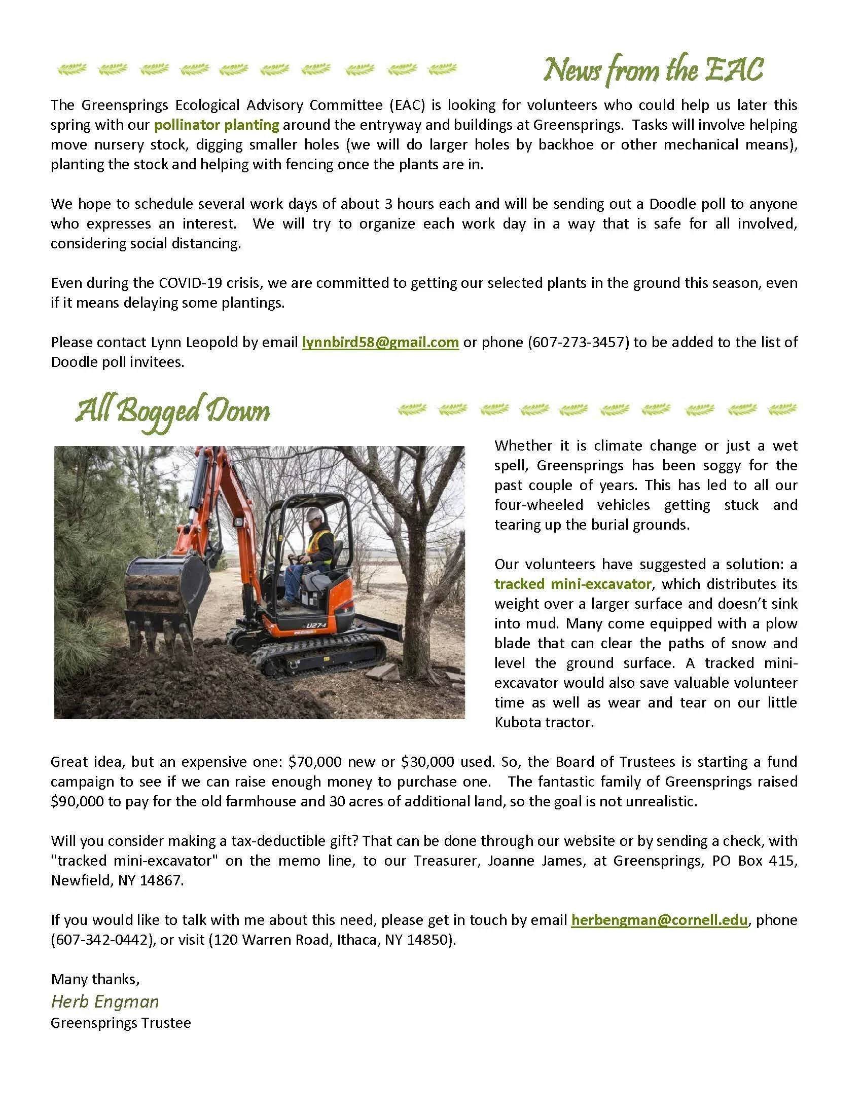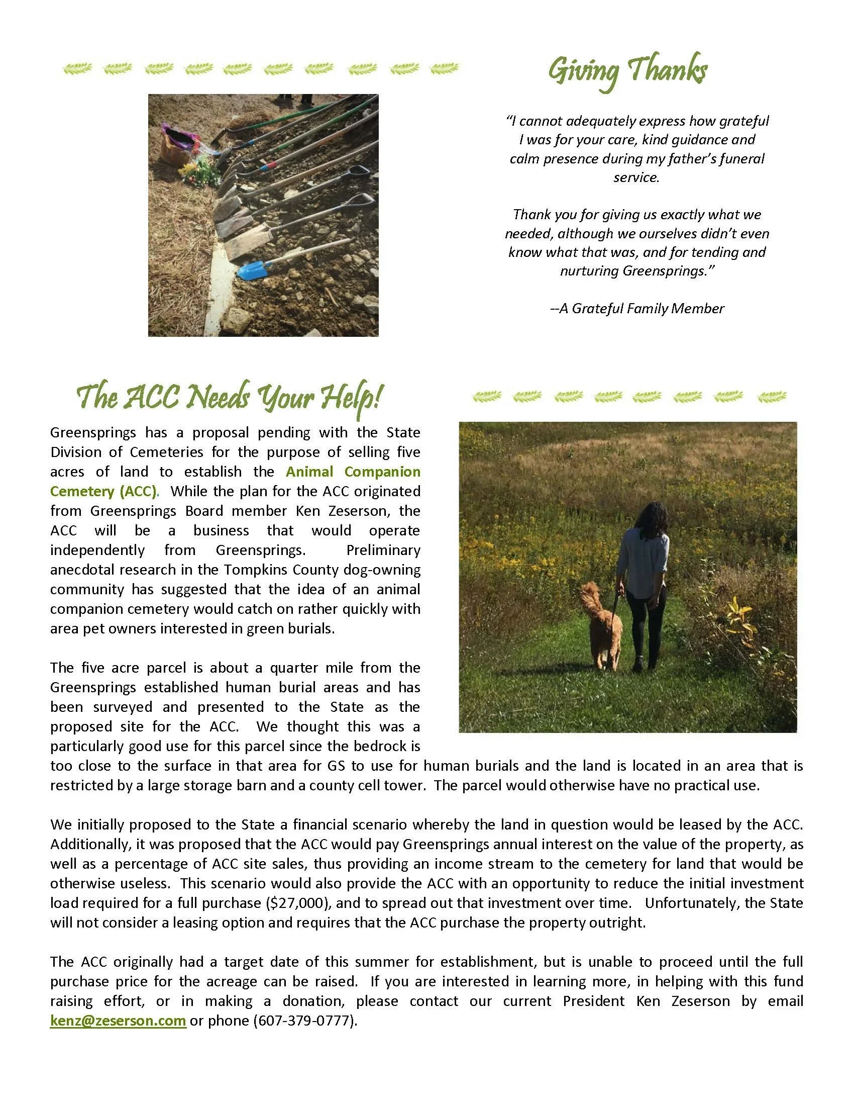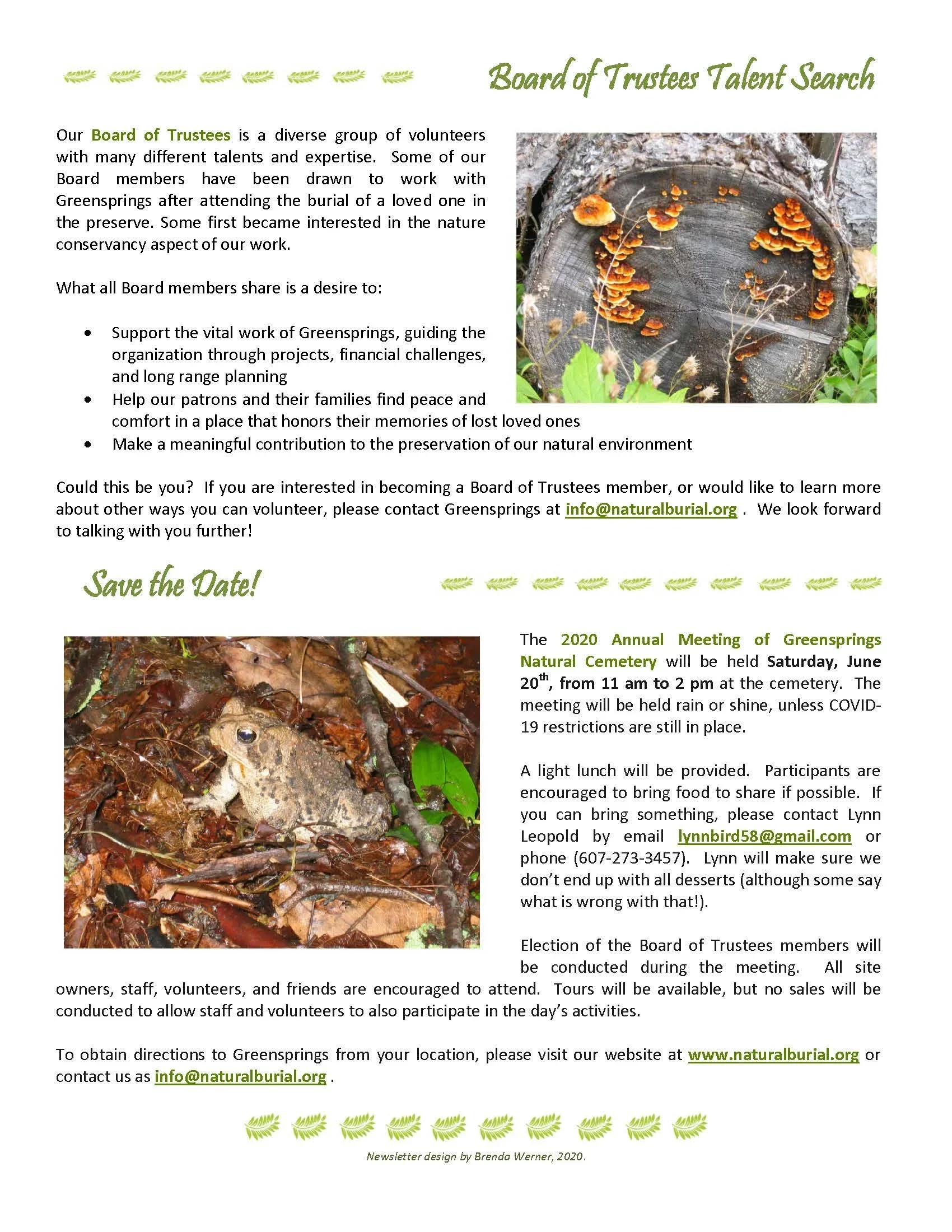Spring Newsletter (2020) Apr 1 Written By Greensprings Natural Cemetery Greensprings Natural Cemetery