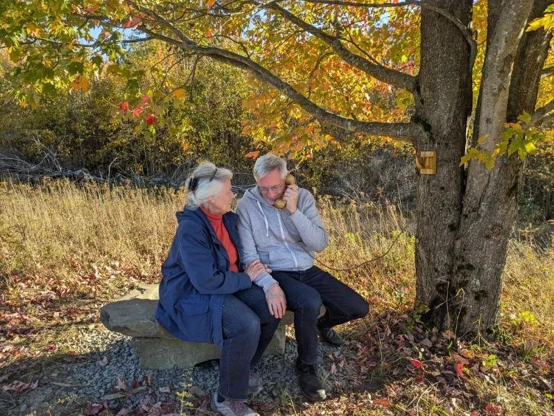 Walk the Herb Engman Loop, sit on the stone bench beside a maple tree and call your loved one on the Wind Phone.